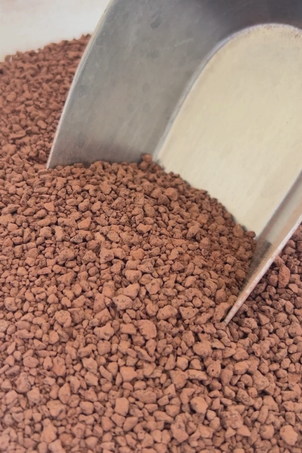 C’est notre chocolat, le même que celui utilisé pour nos tablettes, maturé plusieurs semaines puis délicatement moulu afin de préserver toute sa richesse aromatique.